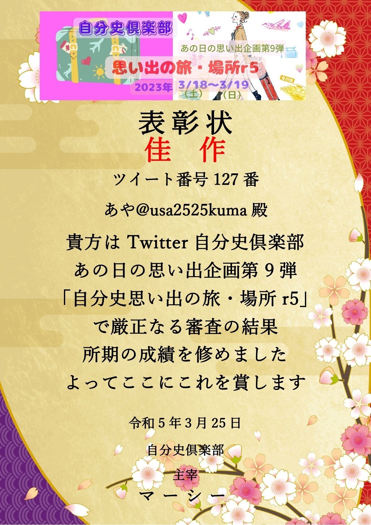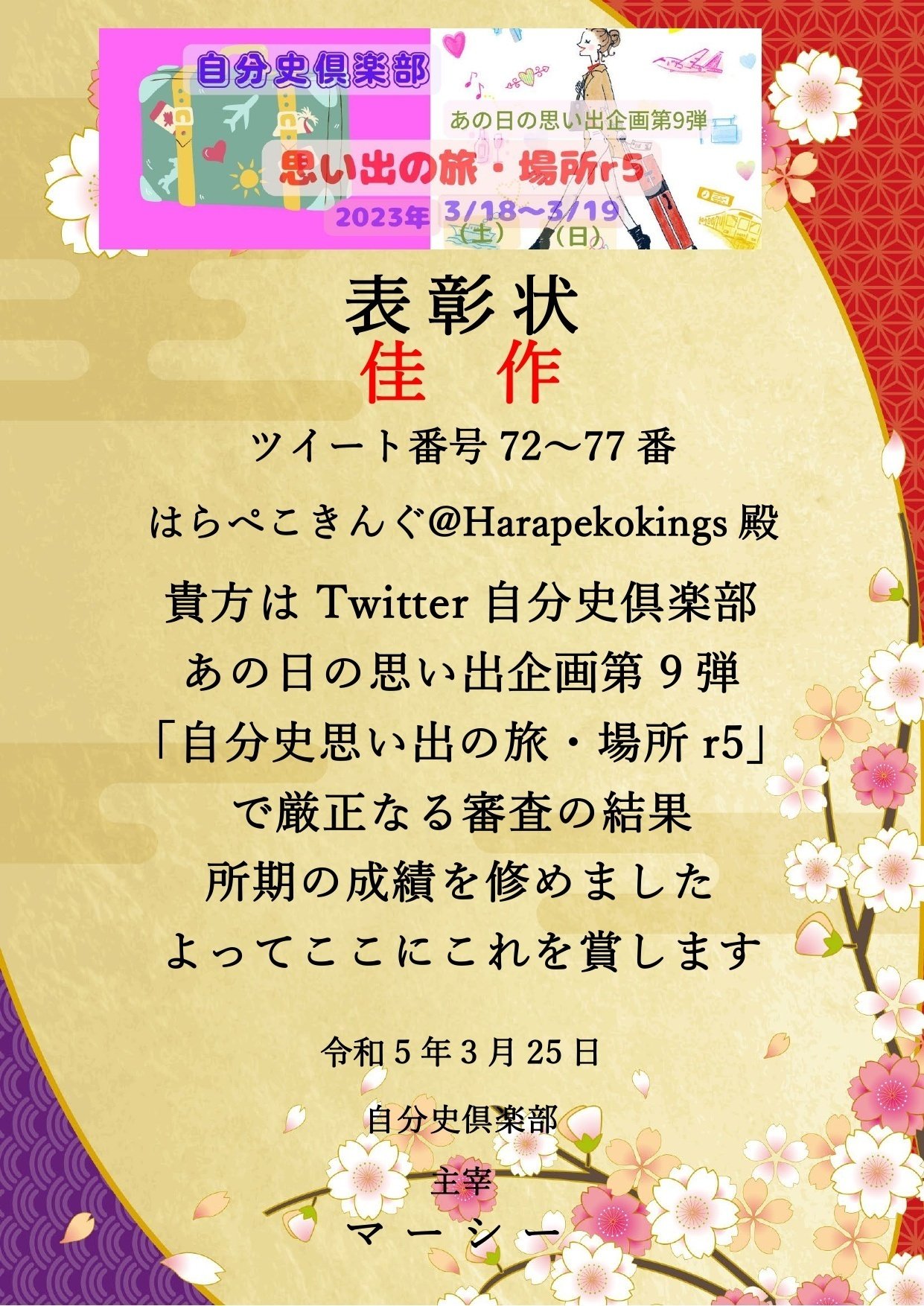 👇👇#自分史思い出の旅・場所r5 pic.twitter.com/y4ufNfGhLQ— マーシー@自分史活用アドバイザー (@marcy60marcy) March 19, 2023